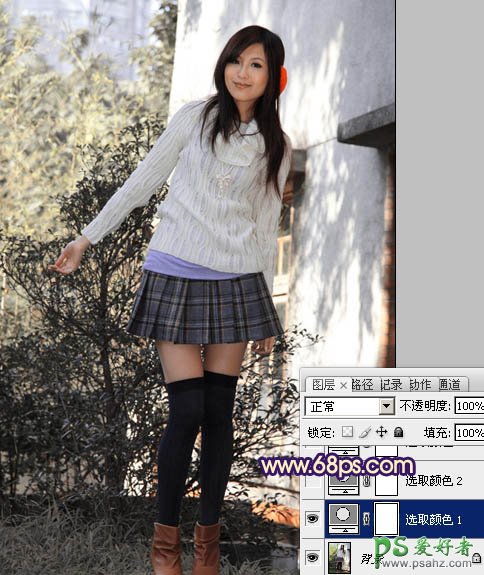 photoshop调出时尚的蓝黄色美腿丝袜少女写真图片
