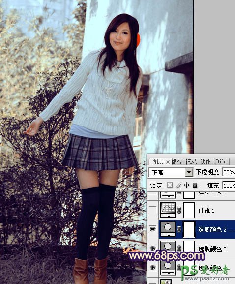 3、按Ctrl + J 把当前可选颜色调整图层复制一层,不透明度改为:20%,加强高光部分的颜色,效果如下图。