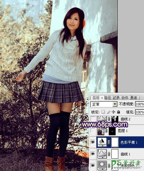 photoshop调出时尚的蓝黄色美腿丝袜少女写真图片