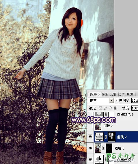 photoshop调出时尚的蓝黄色美腿丝袜少女写真图片