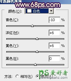 4、创建可选颜色调整图层,对红、黄、白、黑进行调整,参数设置如图12 - 15,效果如图16。这一步增加高光部分的红色。