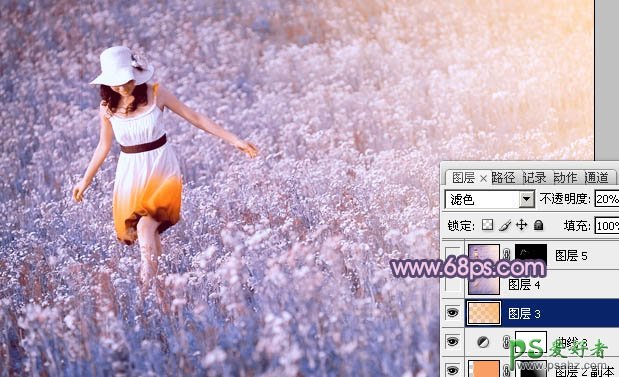 10、按Ctrl + Alt + ~ 调出高光选区,新建一个图层填充橙黄色:#F8B566,混合模式改为“滤色”,不透明度改为:20%,效果如下图。