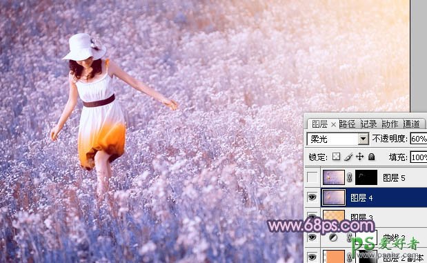 11、新建一个图层,按Ctrl + Alt + Shift + E 盖印图层。执行:滤镜 > 模糊 > 动感模糊,角度设置为45,距离设置为150,确定后把图层混合模式改为“柔光”,不透明度改为:60%,效果如下图。