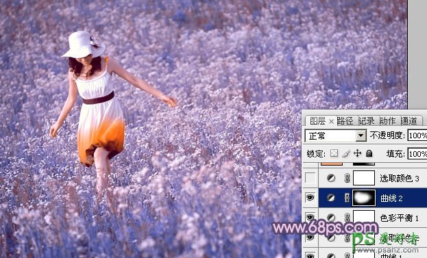 photoshop给草原上的风情少女调出梦幻的蓝红色
