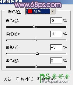 7、创建可选颜色调整图层,对红、蓝、白进行调整,参数设置如图21 - 23,效果如图24。这一步增加高光部分的蓝色。
