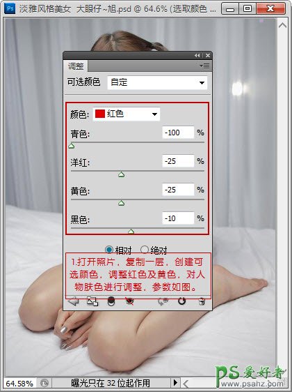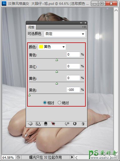 PS给室内清纯少女人体艺术写真照调出淡雅的黄色