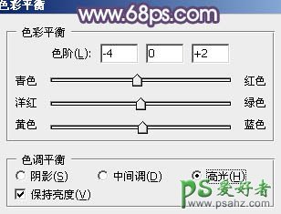 11、创建色彩平衡调整图层,对阴影、高光进行调整,参数色泽如图23,24,效果如图25。这一步增加高光部分的青色。