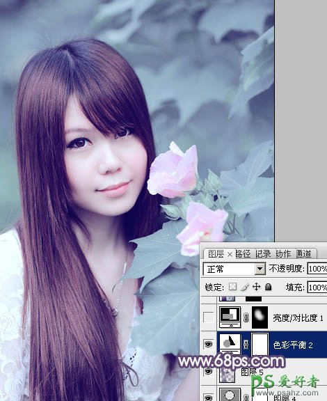 利用PS快速调出甜美的青紫色清纯少女生活写真照