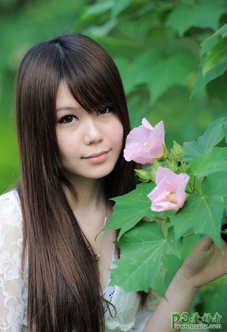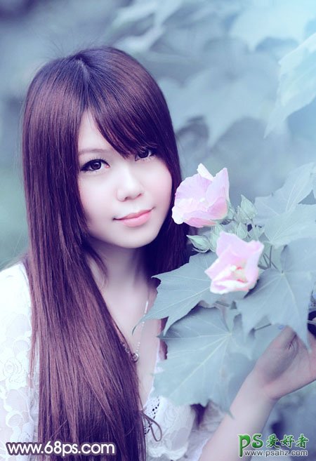 PS美女照片后期调色教程,利用PS快速调出甜美的青紫色清纯少女生活写真照,素材图片整体也比较甜美,只是人物肤色还不够红润,背景颜色有点深。处理的时候先选择好像要的主色,然后调亮图片,背景转为稍淡一点的颜色,再把人物肤色部分调红润即可。