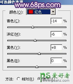 13、创建可选颜色调整图层,对红色进行调整,参数设置如图32,效果如图33。这一步增加图片的红色。