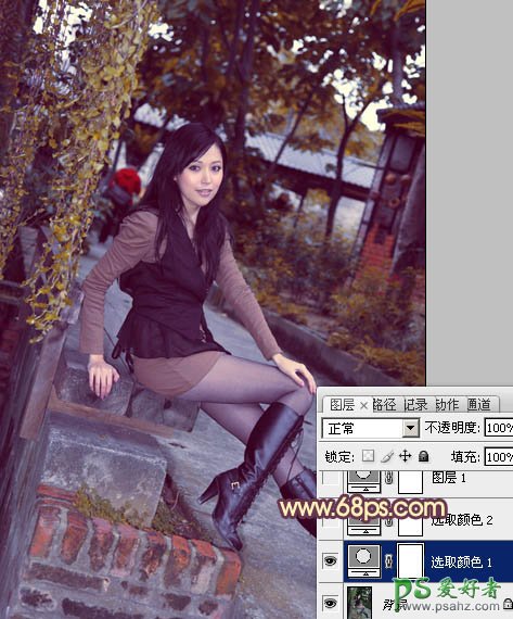 PS给漂亮的黑丝少妇街景照调出漂亮的蓝橙色