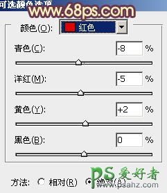 2、再创建可选颜色调整图层,对红、黄、白、中性色、黑进行调整,参数设置如图9 - 13,效果如图14。这一步增加图片的橙黄色。