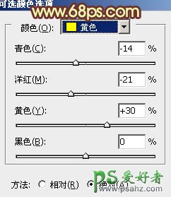 3、创建可选颜色调整图层,对黄、绿、中性色进行调整,参数设置如图6 - 8,效果如图9。这一步加强图片高光部分的颜色和亮度。