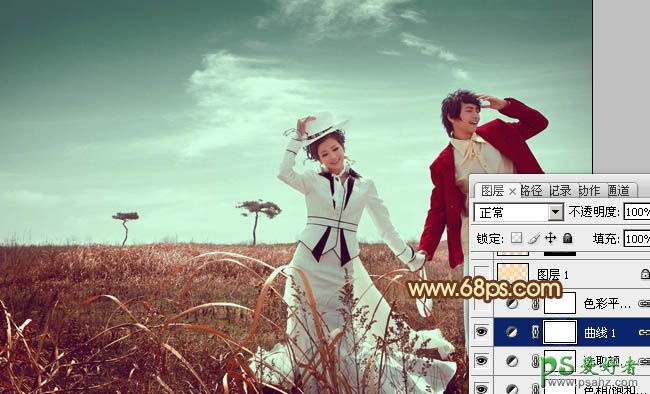 PS调色教程:给好看的情侣婚片调出漂亮的青红色