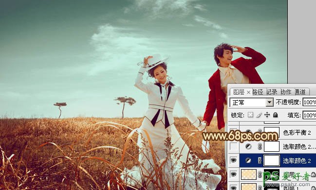 PS调色教程:给好看的情侣婚片调出漂亮的青红色