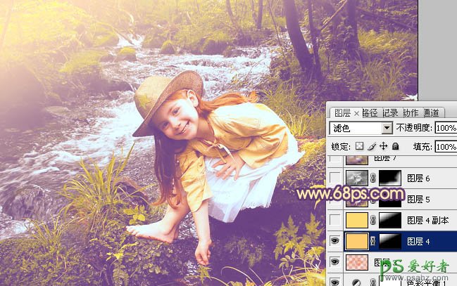 10、新建一个图层,填充橙黄色:#FDCD73,混合模式改为“滤色”,按住Alt键添加图层蒙版,用白色画笔把左上角部分擦出来,增加图片的高光,效果如下图。