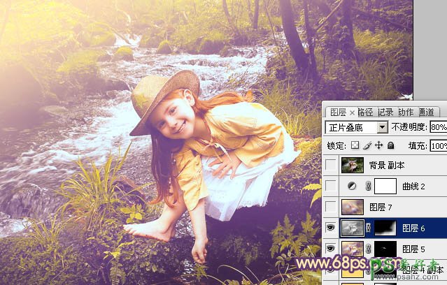 12、新建一个图层,盖印图层。按Ctrl + Shift + U 去色,混合模式改为“正片叠底”,不透明度改为:80%,按住Alt键添加图层蒙版,用白色画笔把右下角部分擦出来,效果如下图。