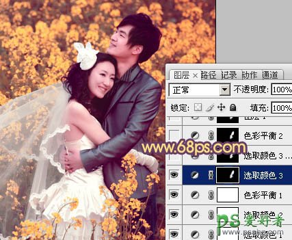 photoshop给一对甜蜜蜜的情侣婚片调出漂亮的橙紫色