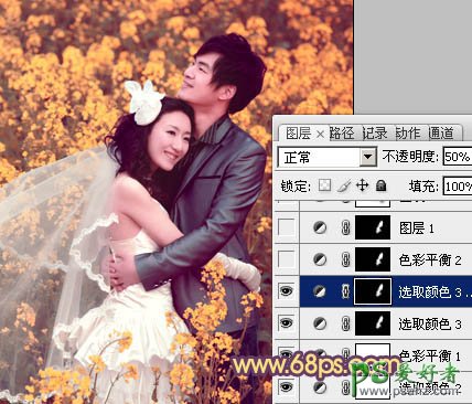 5、按Ctrl + J 把当前可选颜色调整图层复制一层,不透明度改为:50%,效果如下图。