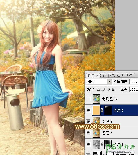 11、新建一个图层,填充橙黄色:#F8C772,混合模式改为“滤色”,按住Alt键添加图层蒙版,用白色画笔把左上角部分擦出来,效果如下图。这一步增加图片的高光。