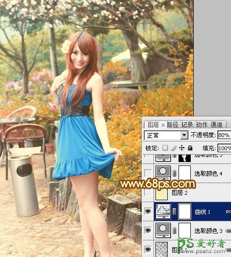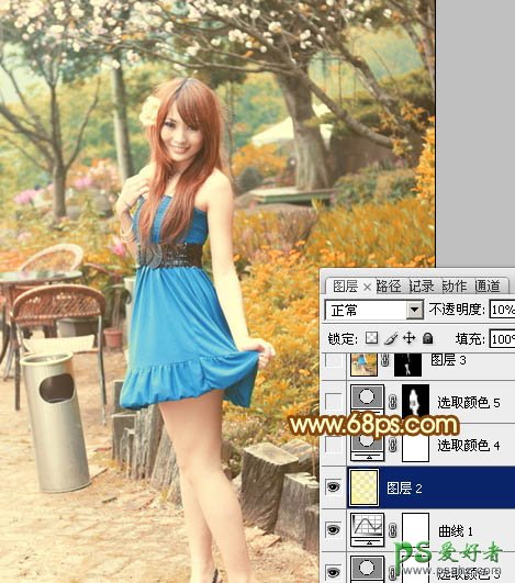 PS调色教程:给公园里的美女图片调出性感的粉黄色