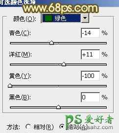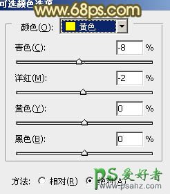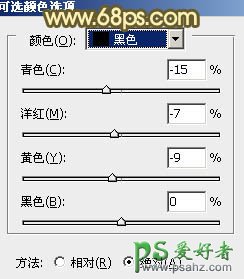 3、创建可选颜色调整图层,对黄、绿、黑进行调整,参数设置如图6 - 8,效果如图9。这一步把草地颜色调黄一点,再增加暗部褐色。