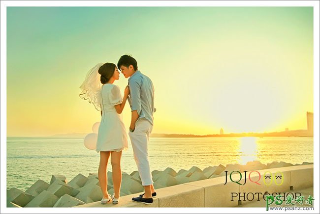 今天我们来教大家学习一篇漂亮的小情侣婚纱艺术照调色,PS婚片后期调色教程,photoshop给清纯的海景情侣婚片调出鲜艳的青黄色,本教程的调色方法非常特别,作者应用了图层样式中的混合选项、应用图像、计算等多种方法调色。虽然是一些不常用的工具,调出的颜色非常特别。有兴趣的可以尝试一下。