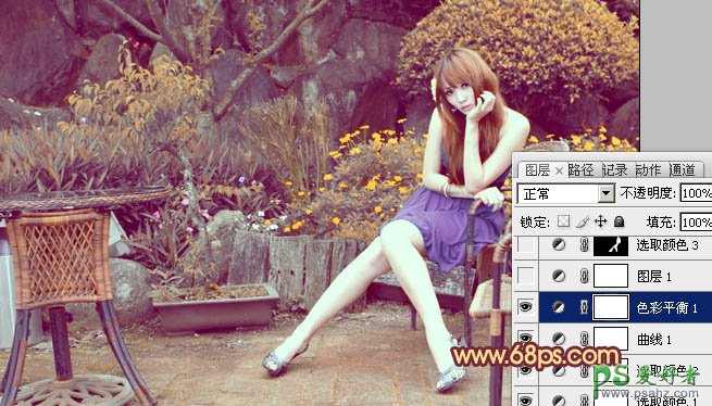 PS给清纯可爱的学生妹纸调出甜美的蓝紫色