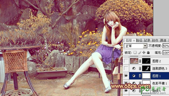 5、按Ctrl + J 把当前色彩平衡调整图层复制一层,增加图片的暖色。确定后把图层不透明度改为:50%,效果如下图。