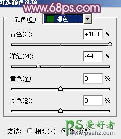1、打开原图素材,创建可选颜色调整图层,对黄,绿进行调整,参数设置如图1,2,效果如图3。这一步把背景部分的黄绿色转为绿色。