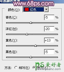 9、创建可选颜色调整图层,对红、蓝、洋红进行调整,参数设置如图21 - 23,确定后把图层不透明度改为:50%,效果如图24。这一步把人物肤色调红润一点。