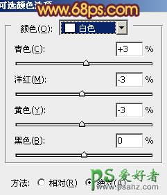 10、创建可选颜色调整图层,对红、黄、白进行调整,参数设置如图24 - 26,效果如图27。这一步增加图片橙红色。
