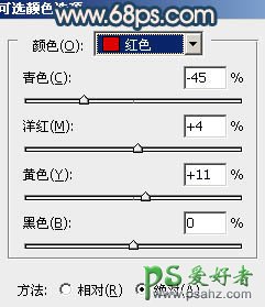 2、创建可选颜色调整图层,对红、青、白、中性色进行调整,参数设置如图2 - 5,效果如图6。这一步增加图片的青色,并加强红色部分。
