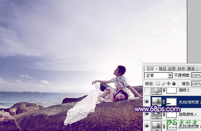 photoshop调制出经典蓝紫色海景情侣婚片教程