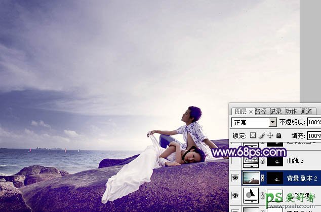 8、把背景图层复制一层,按Ctrl + Shift + ] 置顶,进入通道面板,复制绿色通道,然后覆盖到蓝色通道。回到图层面板,按住Alt键添加图层蒙版,用白色画笔把人物肤色及脸部擦出来,效果如下图。