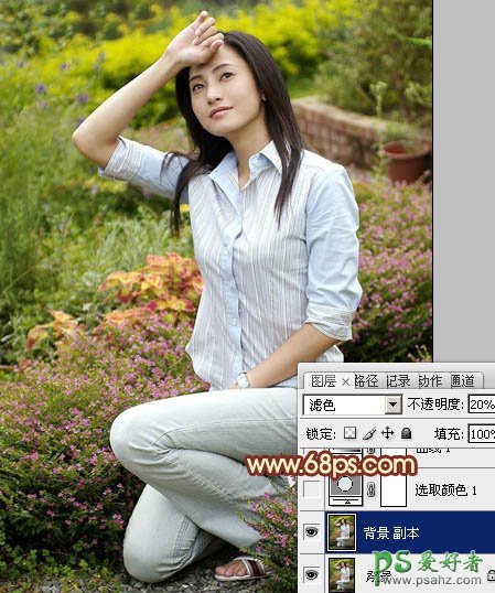 1、打开原图素材,按Ctrl + J 把背景图层复制一层,混合模式改为“滤色”,不透明度改为:20%,效果如下图。这一步把图片稍微提亮。