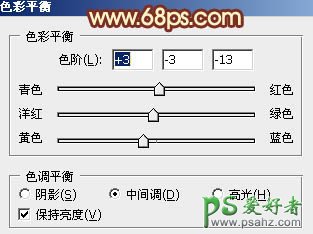 9、调出当前图层蒙版选区,创建色彩平衡调整图层,对阴影、中间调、高光进行调整,参数设置如图20 - 22,效果如图23。这一步微调肤色颜色。