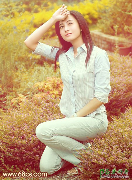 今天我们来学习一篇PS美女照片调色实例教程,PS调色教程:给花草丛中的漂亮美女调出柔美的暖春色,素材图片花朵盛开,绿色盎然,有较强的春天气息。只是图片中少了一点温暖的阳光。处理的时候可以适当给图片增加柔和的暖色,然后再渲染高光部分,做出类似阳光效果。