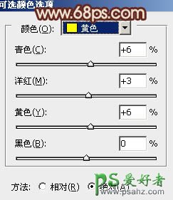 3、创建可选颜色调整图层,对黄、绿、中性色进行调整,参数设置如图4 - 6,效果如图7。这一步把图片中的黄色及绿色稍微调暗。