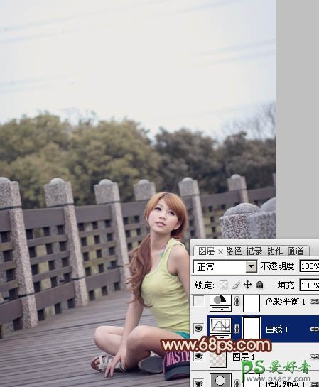 5、创建曲线调整图层,对蓝色进行调整,参数设置如图9,效果如图10。这一步增加暗部蓝色。