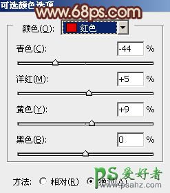 7、创建可选颜色调整图层,对红、白、黑进行调整,参数设置如图15 - 17,效果如图18。这一步增加图片的红色。