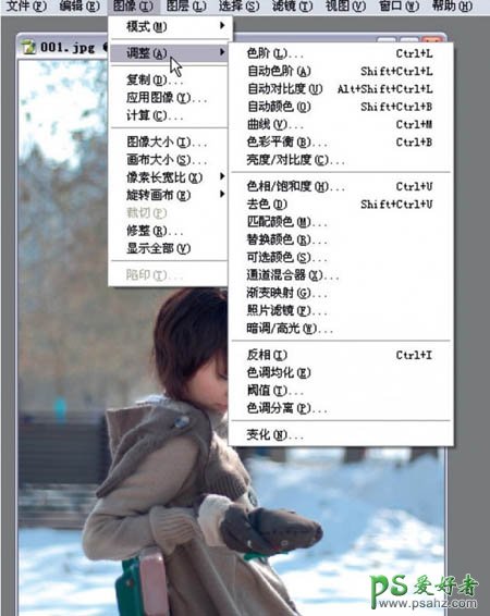 6、我们使用曲线调整完画面的整体亮度之后,再分别对画面的高光和暗部进行调整,分别处理这两块区域的色调,让整体色泽更加完美。 选择“图像”菜单。在“调整”选项中找到“色彩平衡”选项。打开“色彩平衡”。“色彩平衡”主要是对照片的色彩进行细节调整,增加一些照片中缺少的颜色,或加强一些照片中想要突出的颜色。