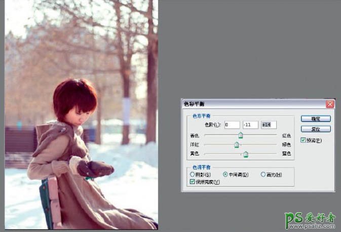 PS调色教程:给冬季户外漂亮美女写真照调出温暖阳光色