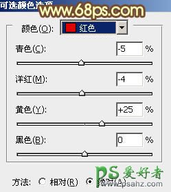 7、调出当前图层蒙版选区,创建可选颜色调整图层,对红、黄、白进行调整,参数设置如图16 - 18,效果如图19。这一步把人物肤色稍微调红润一点。