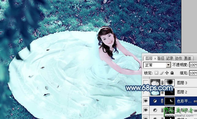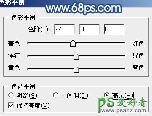 10、调出当前图层蒙版选区,创建色彩平衡调整图层,对高光进行调整,参数设置如图22,效果如图23。这一步增加肤色高光部分的青色。