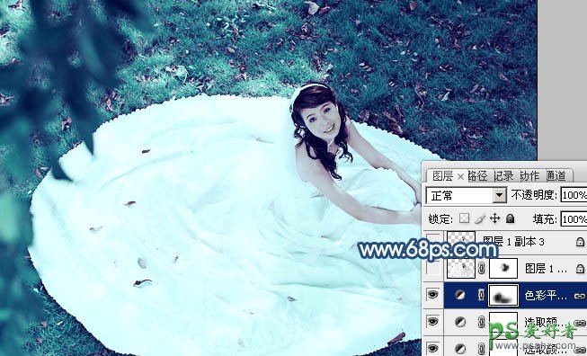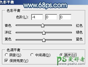 5、创建色彩平衡调整图层,对高光进行调整,参数设置如图13,效果如图14。这一步增加高光部分的淡青色。