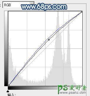 8、调出当前图层蒙版选区及人物脸部及肤色选区。创建曲线调整图层,对RGB,蓝进行调整,参数设置如图17,效果如图18。这一步把人物肤色调亮并稍微调蓝。