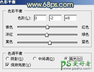 12、调出人物部分的选区,创建色彩平衡调整图层,对高光进行调整,参数设置如图24,确定后把图层不透明度改为:60%,效果如图25。这一步微调人物肤色颜色。