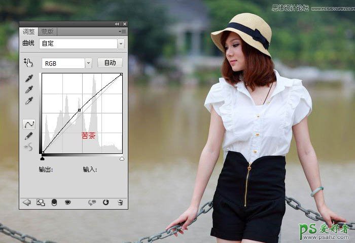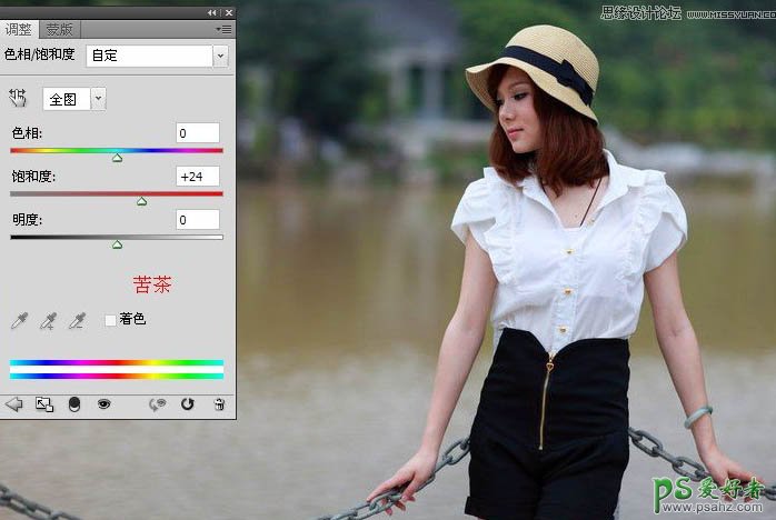 PS调色教程:快速给河边时尚少女写真照调出唯美的青色调