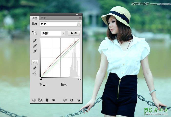 5、使用套索工具,套出人物的面部、颈部、手部,羽化10~15像素,创建曲线调整图层,选择红、绿通道参数及效果如下图。